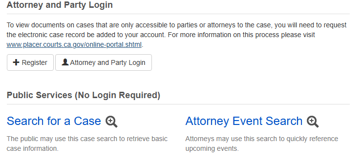 - Using the official Placer County court portal for online case searches